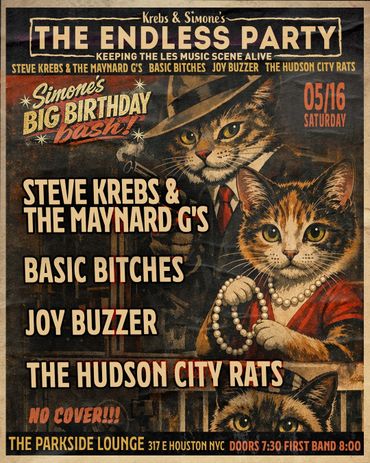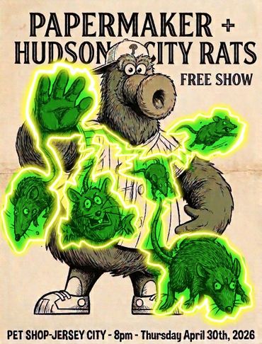 From their haunt high atop the Palisade in Jersey City, Hudson City Rats serve up a healthy dose of primitive, infectious rock 'n’ roll, in their own raw, stripped down style. With the infamous punk rocker Patrick Lally at the helm, Fred Jenkins and Jeff Feinberg provide a big beat behind Robert Boudreau's blues-tinged guitar. Their live show is a house rockin' party! It needs to be experienced. It's sure to make you move!
